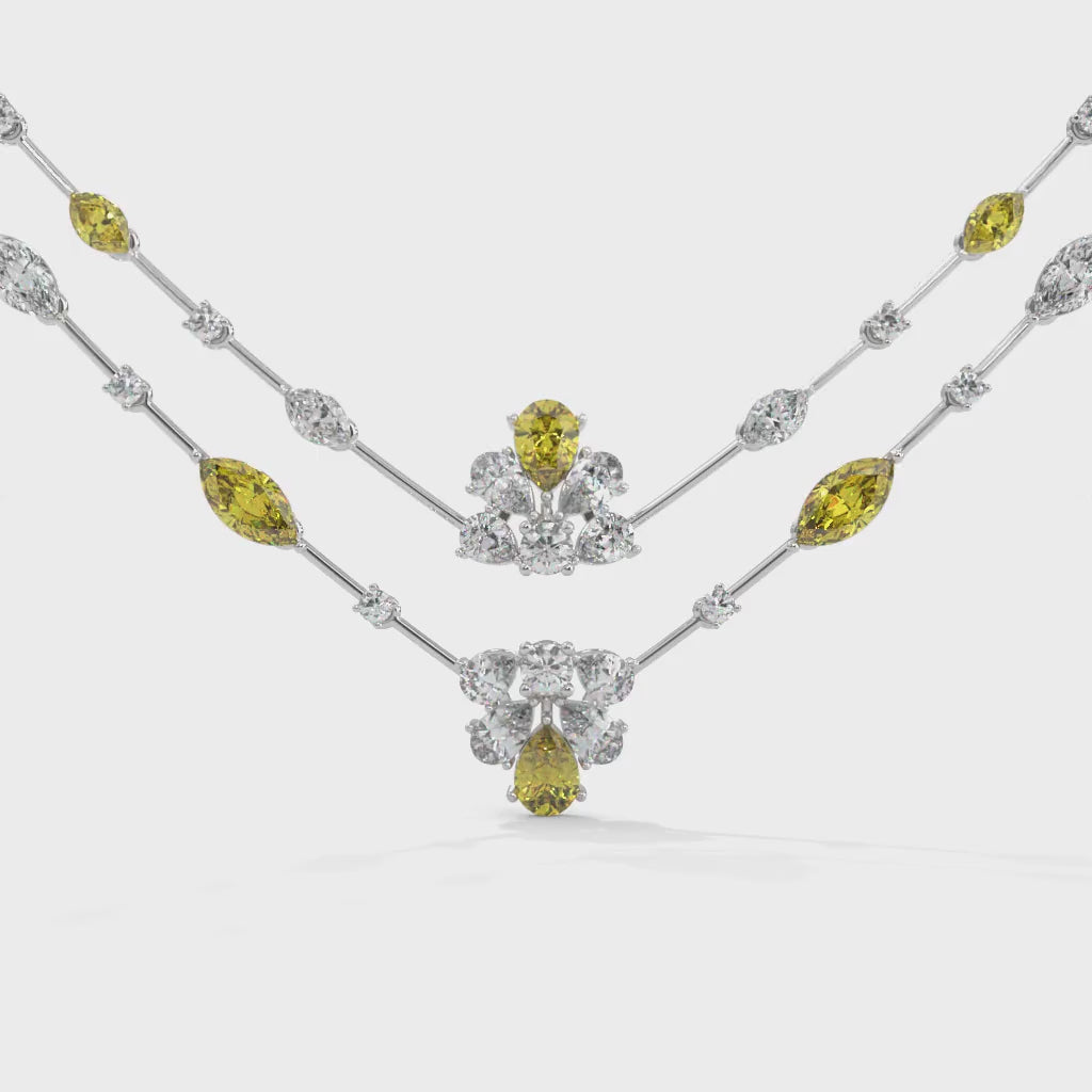 Each citrine sparkles with sunshine-like brilliance, gracefully flowing in a layered silhouette that adds depth and sophistication. Whether worn for a grand celebration or as a statement of personal style, this necklace captures attention with its regal design and glowing beauty.
