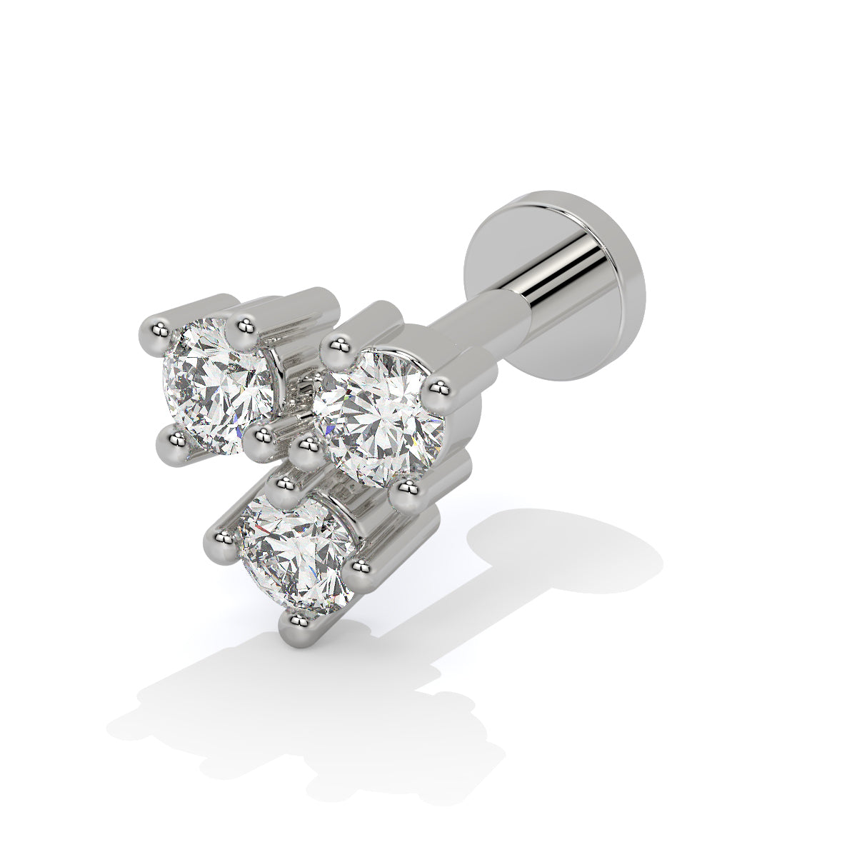 Enhance your elegance with the Dazzle Trio Diamond Nose Pin, a refined blend of charm and brilliance. Featuring a trio of brilliant-cut diamonds, this exquisite design creates a dazzling cluster effect that radiates unmatched sparkle. Set in 10KT, 14KT, 18KT Gold & Sterling Silver, with delicate prong settings, this nose pin is a perfect blend of minimalism and luxury.