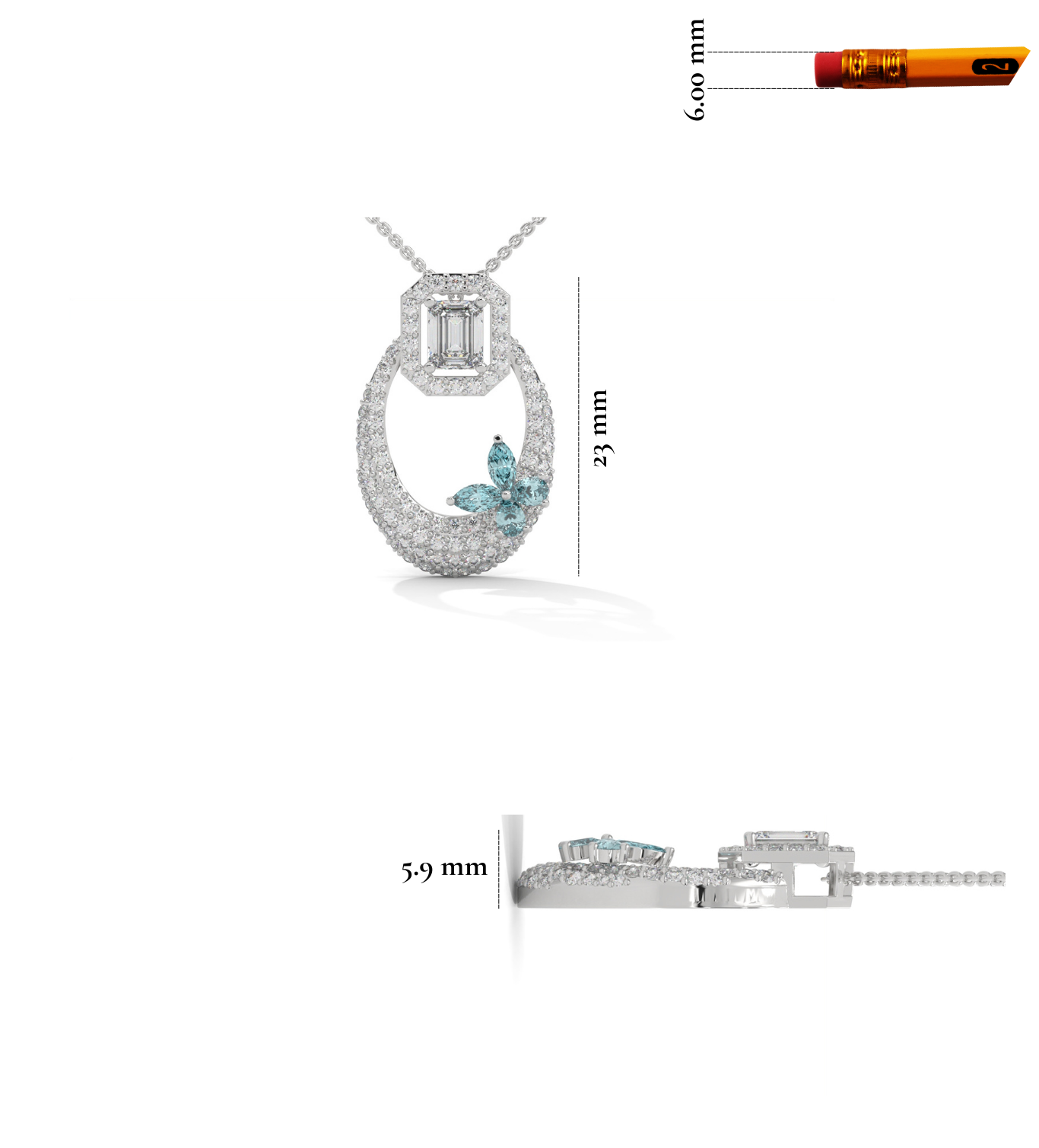 The Frostine Bloom Diamond Pendant captures the delicate beauty of a winter blossom kissed by frost. Designed with a radiant floral motif, this pendant glistens with meticulously set diamonds that shimmer like crystals on fresh snow. Its graceful design reflects purity, elegance, and timeless charm, making it a perfect piece for both everyday sophistication and special occasions.