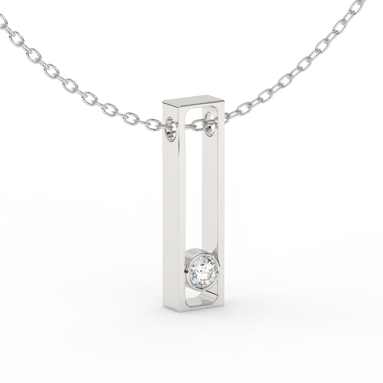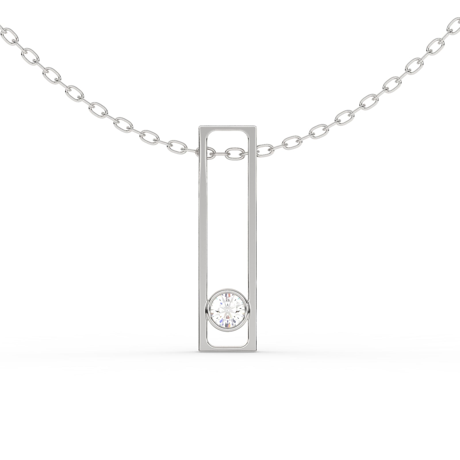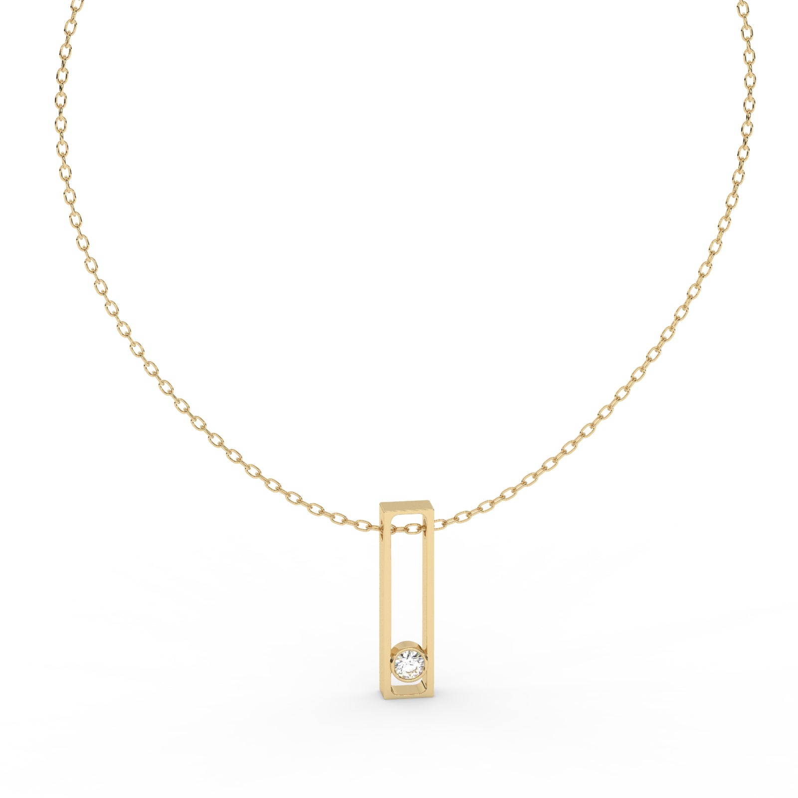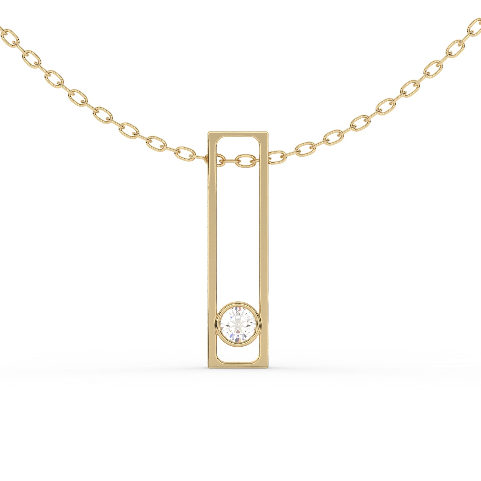 Crafted in 10KT, 14KT, 18KT Gold & Sterling Silver, the pendant exudes a modern charm while highlighting the mesmerizing sparkle of the solitaire diamond. The bezel setting ensures durability while enhancing the brilliance of the stone, making it an exquisite choice for those who love timeless sophistication.