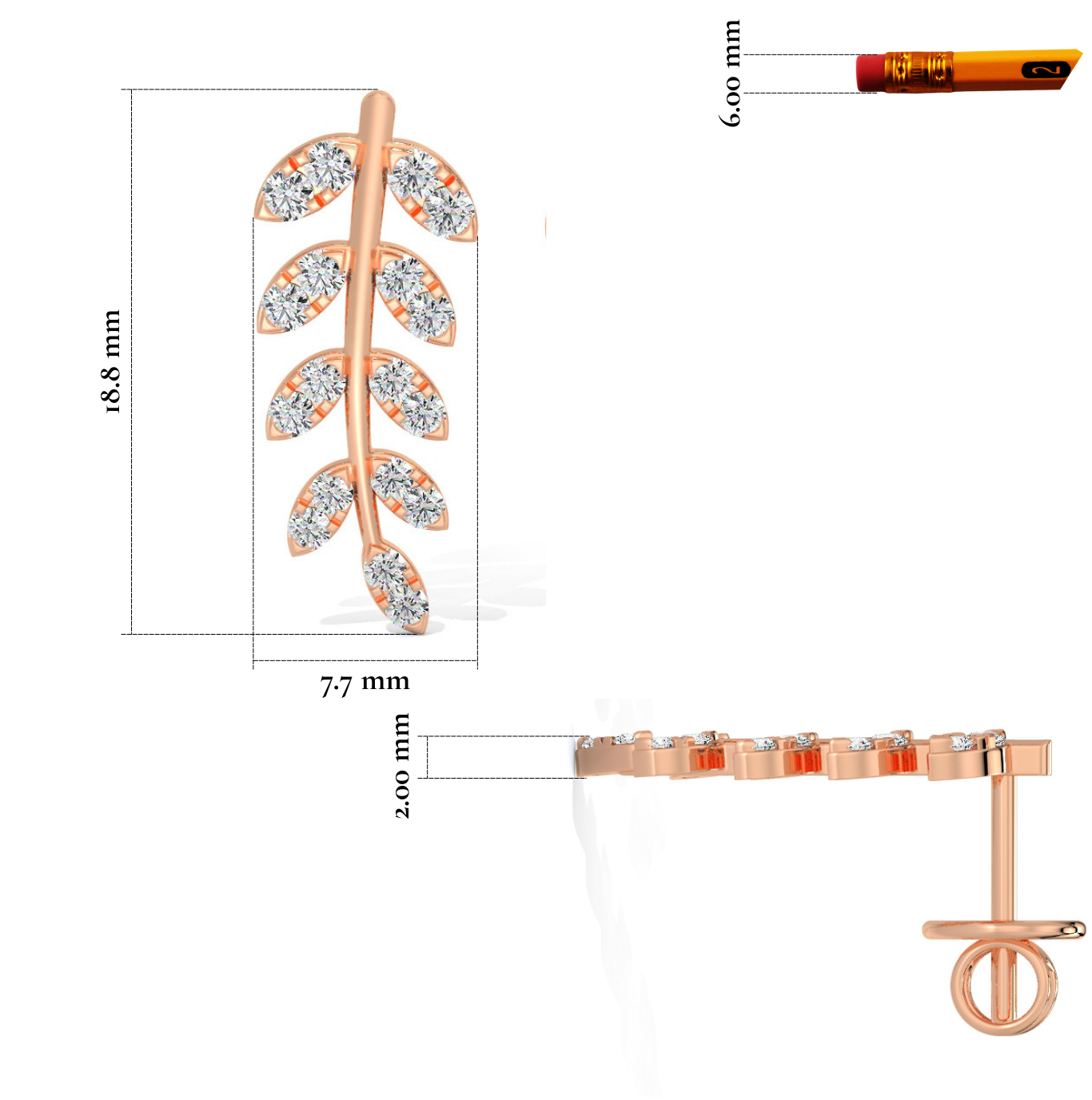 Inspired by the beauty of nature, the Leaf Diamond Ear Climbers bring a touch of organic grace to fine jewelry. Designed to elegantly trace the curve of your ear, these exquisite climbers feature brilliant-cut diamonds arranged in a delicate leaf motif, creating a radiant and ethereal effect. The sleek, nature-inspired silhouette adds a modern yet timeless charm, making them a perfect statement of elegance and sophistication.