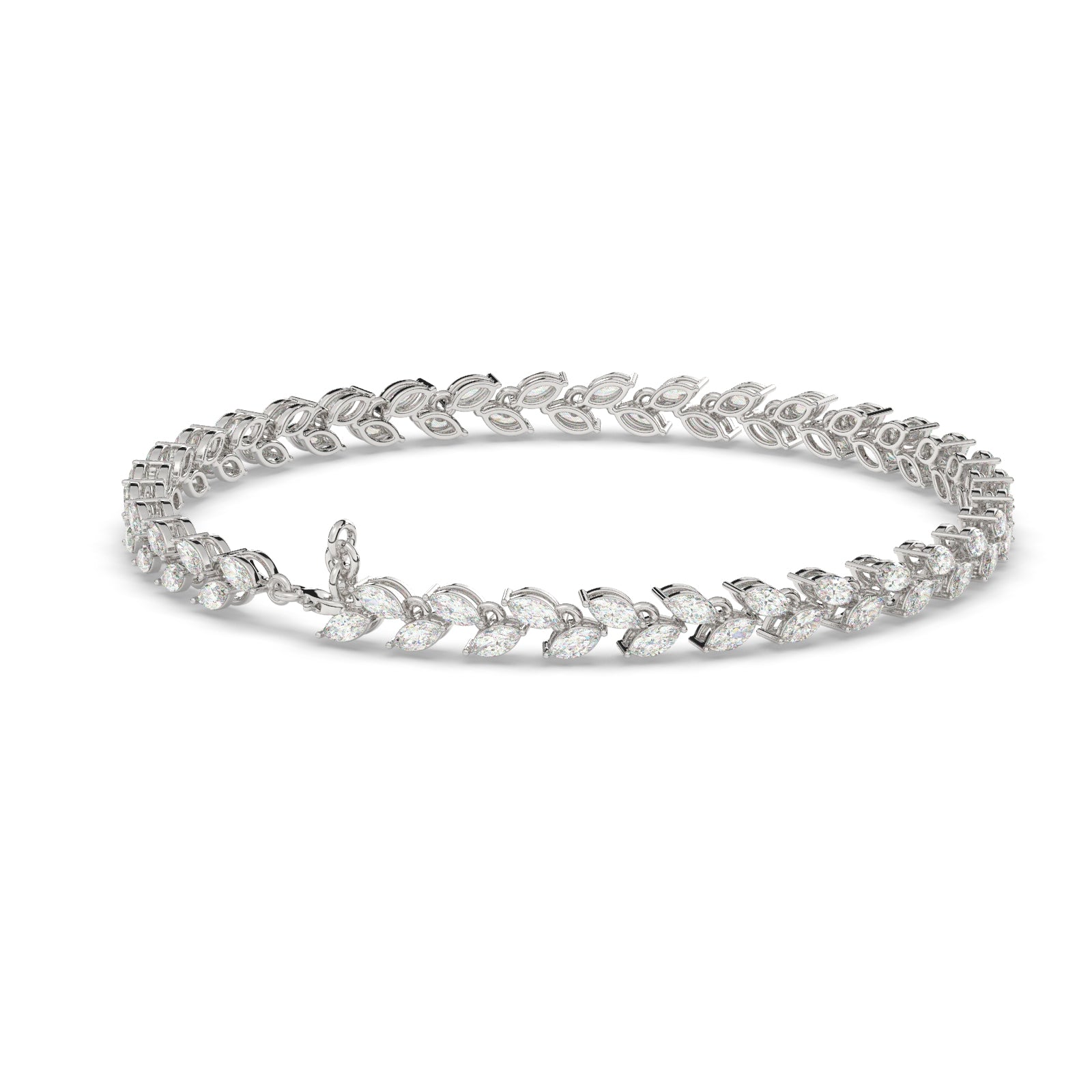 Embrace the beauty of nature with the Leaf Tennis Diamond Bracelet, a graceful fusion of organic design and timeless luxury. Crafted in 10KT, 14KT, 18KT Gold & Sterling Silver, this exquisite bracelet features a delicate sequence of leaf-inspired diamond settings, forming an elegant, flowing pattern reminiscent of nature’s artistry. Each Marquise diamond is meticulously placed to enhance its radiance, creating a shimmering effect with every movement.