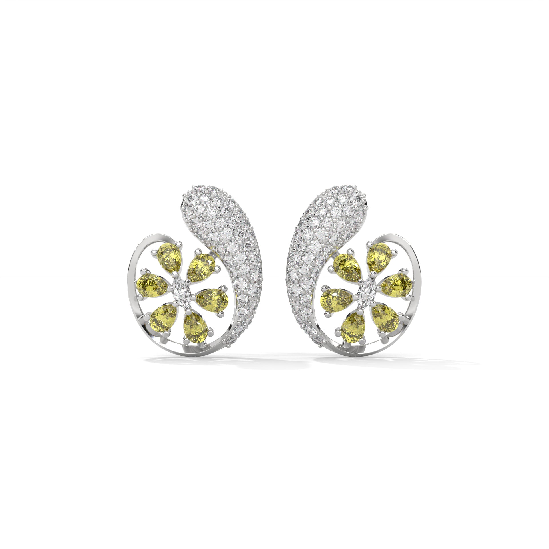 Add a burst of freshness to your style with the Lime Twist Bloom Studs – a vibrant fusion of playful charm and refined elegance. Inspired by the lively energy of citrus and the delicate beauty of blooming petals, these studs feature a floral design accented with lime-green gemstones and brilliant-cut diamonds, creating a dazzling contrast that’s both refreshing and radiant.