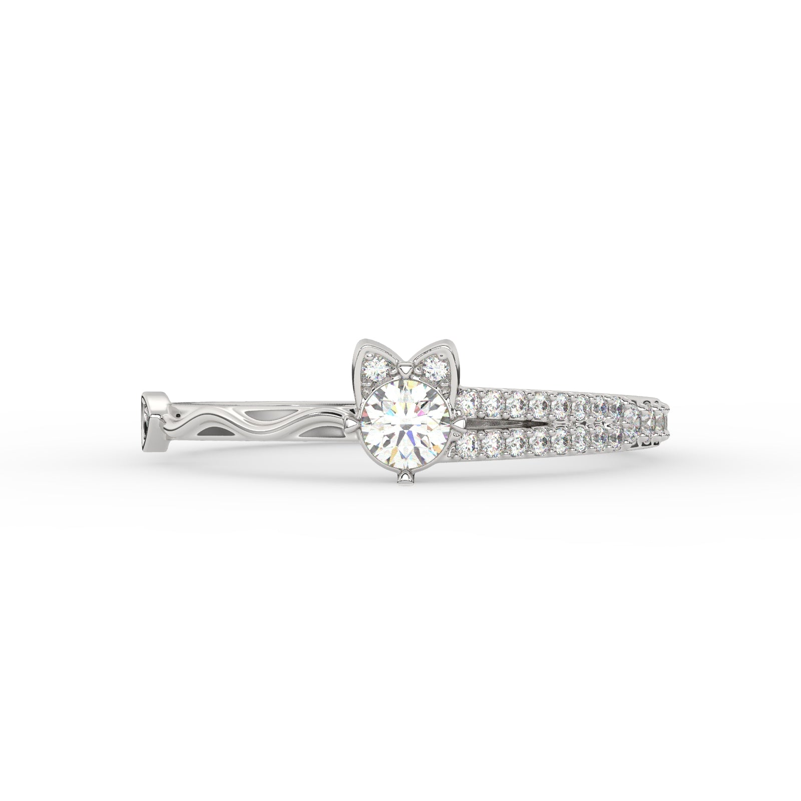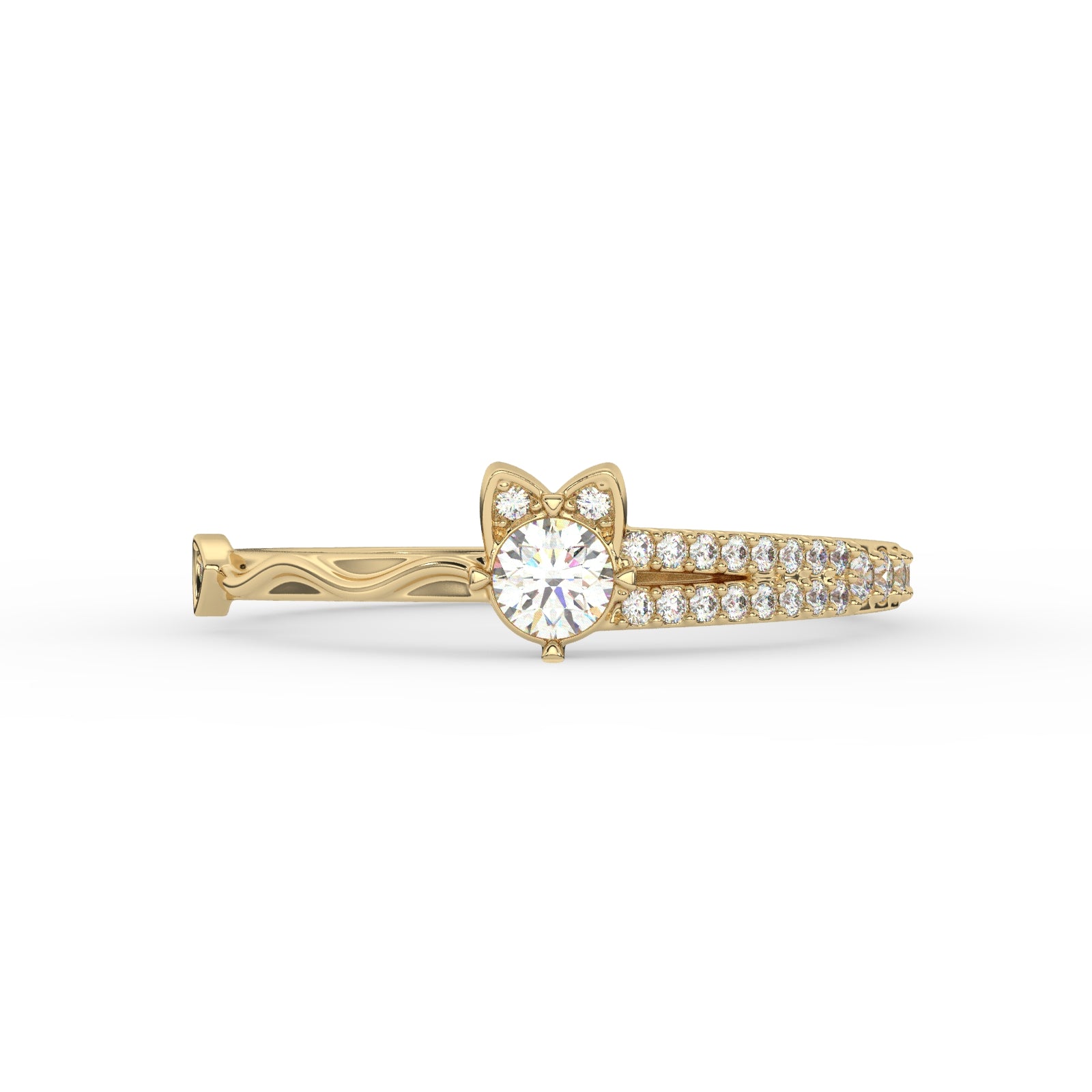 Unleash your inner sparkle with the Meow in Love - Glittering Kitty Diamond Ring, a playful yet elegant creation for the true feline enthusiast. This delightful design captures the charm of a kitten in love, brought to life with shimmering diamonds and fine craftsmanship. At its heart lies a radiant round diamond, framed by dainty cat ears and delicate curves that mimic the adorable features of your favorite furry friend.