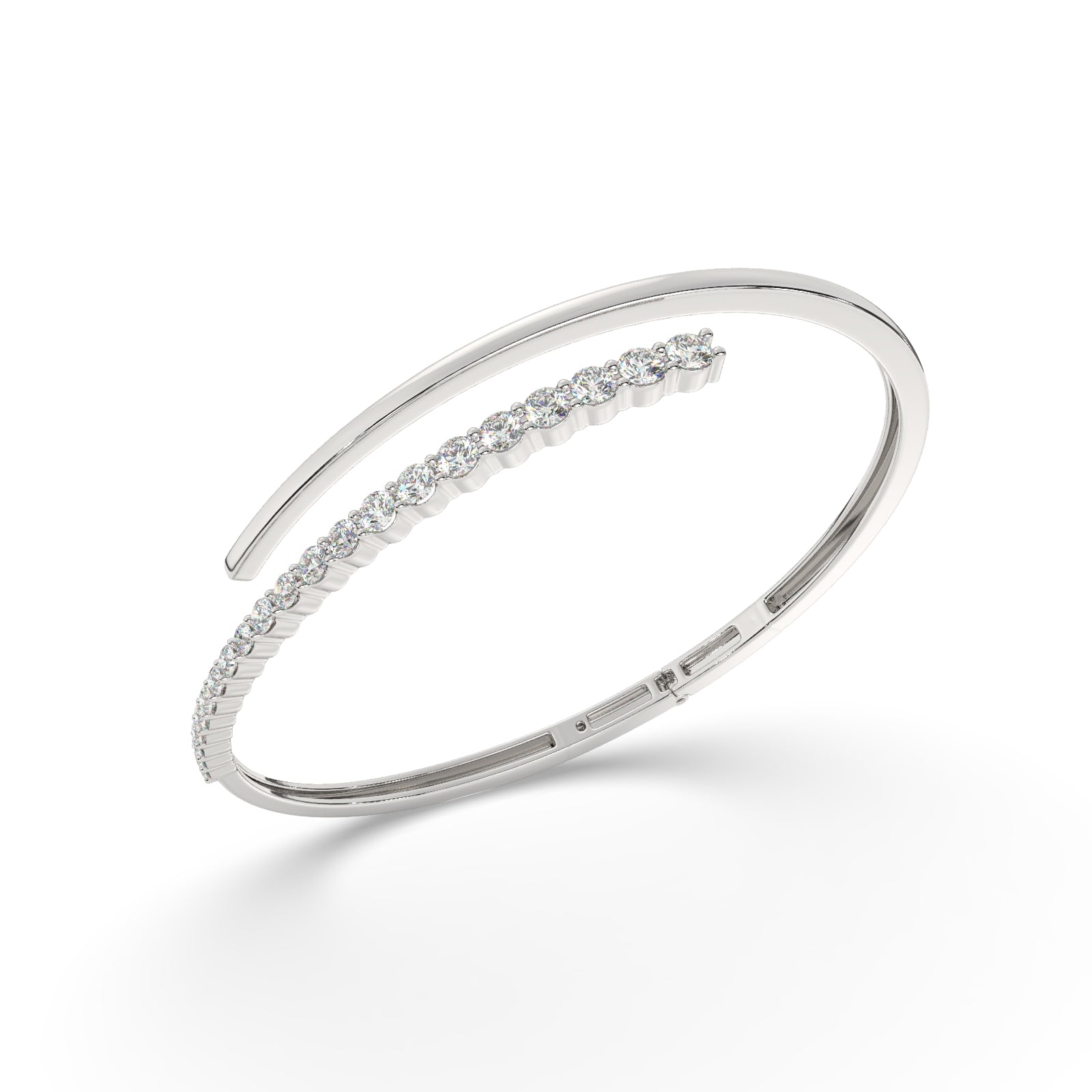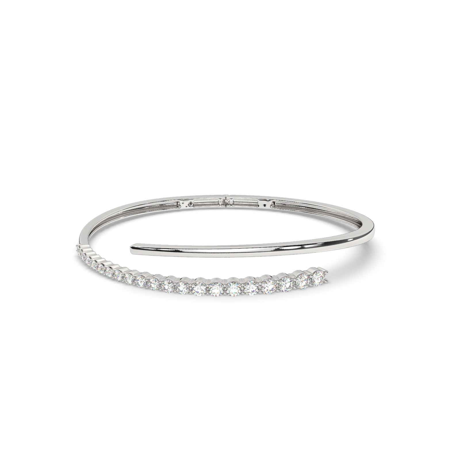 The open cuff silhouette offers a comfortable, adjustable fit, making it perfect for layering or wearing solo as an understated statement piece. Whether for a formal occasion or everyday elegance, this diamond bangle is a must-have for those who appreciate modern luxury with a touch of brilliance.