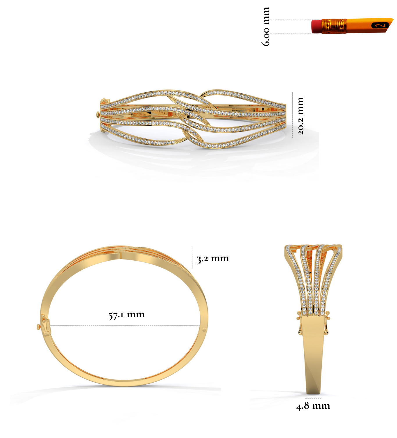 Expertly handcrafted in 10KT, 14KT, 18KT Gold & Sterling Silver, this bangle is a versatile statement piece — stunning when worn alone and equally graceful when stacked with other jewels. Perfect for both grand celebrations and refined everyday wear, it adds a luminous touch of sophistication to every look.