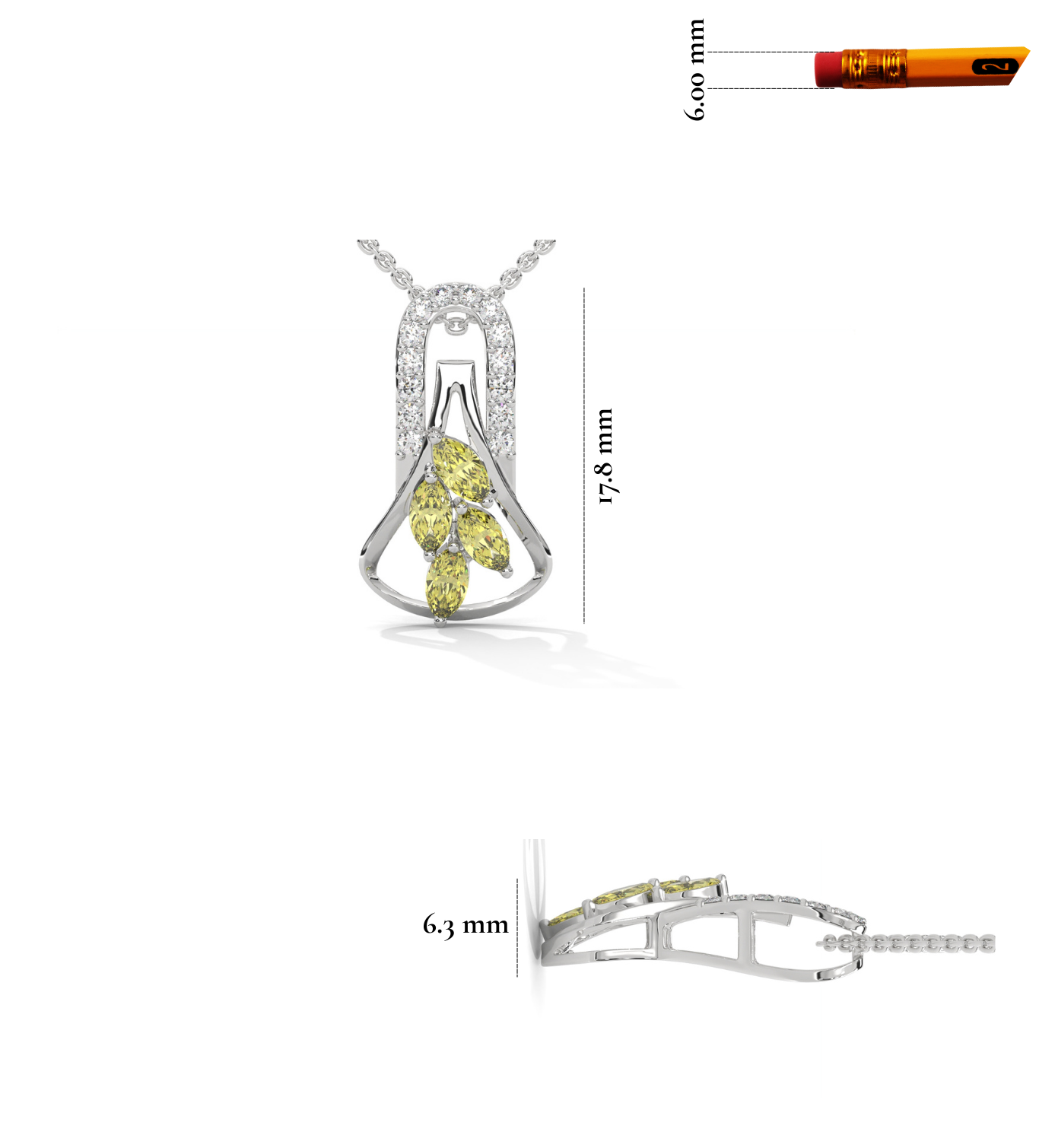 The Solaris Leaf Diamond Pendant draws inspiration from the graceful beauty of leaves basking in sunlight. Designed with intricate detailing, it features finely set diamonds that shimmer like dewdrops, radiating brilliance with every glance. Its elegant leaf motif symbolizes growth, harmony, and timeless elegance, making it a meaningful addition to any jewelry collection.