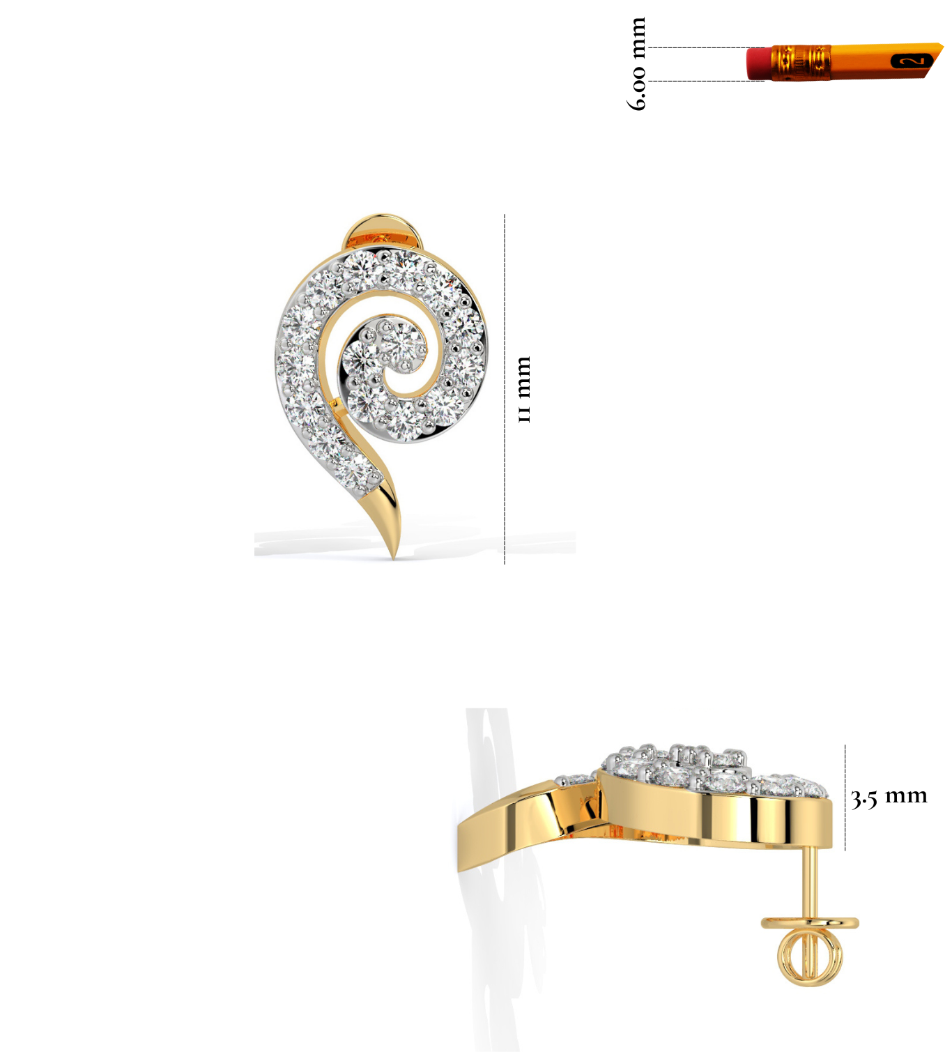 Elevate your style with the Spiral Gleam Diamond Studs, a mesmerizing fusion of motion and sparkle. Crafted in 10KT, 14KT, 18KT Gold & Sterling Silver, these exquisite studs feature a graceful spiral design, symbolizing infinity and continuous elegance. Each delicate curve is adorned with brilliant-cut diamonds, creating a radiant swirl of light with every movement.