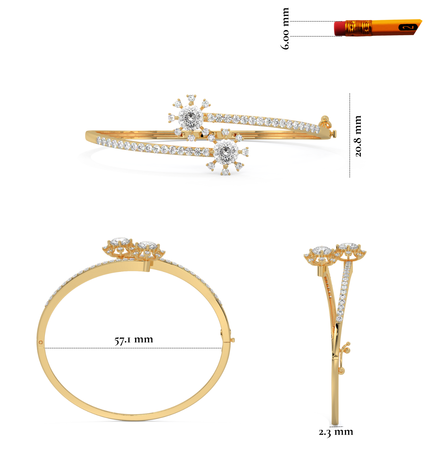 The Constellation Diamond Bangle is an ode to the night sky, where sparkling stars come alive in a graceful celestial dance. Adorned with meticulously set diamonds arranged like constellations, this bangle captures the magic of starlit nights and transforms it into a wearable masterpiece. Each diamond gleams with radiant brilliance, reflecting light with every movement to create a mesmerizing cosmic glow.