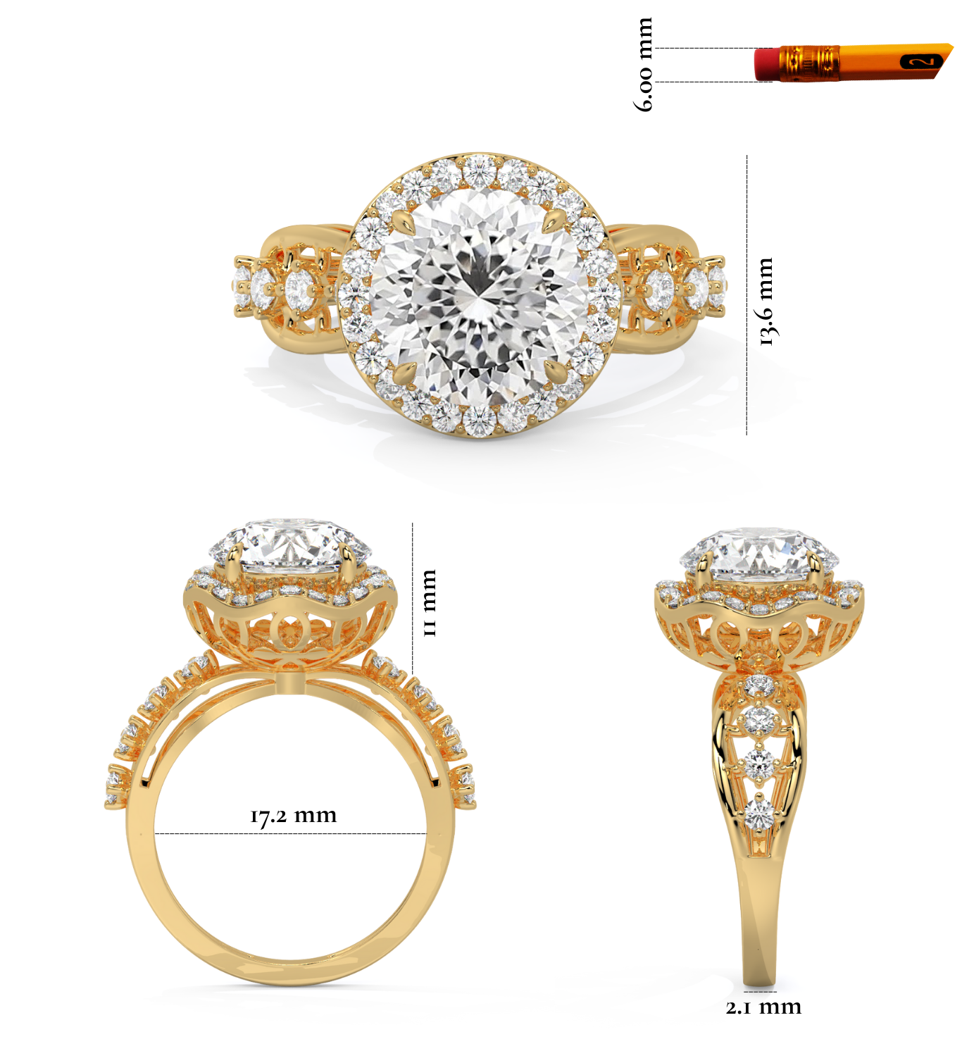 💎 Center Stone: Round & Portuguese-Cut