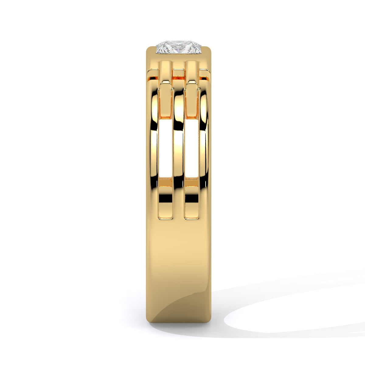 Bold, commanding, and meticulously crafted, the Titan Crest Diamond Men's Ring is a symbol of modern masculinity and timeless prestige. Featuring a striking princess-cut solitaire diamond set at the center, this ring exudes strength and sophistication. The structured, open-frame band in 10KT, 14KT, 18KT Gold & Sterling Silver, showcases a bold, architectural design—merging power with precision.